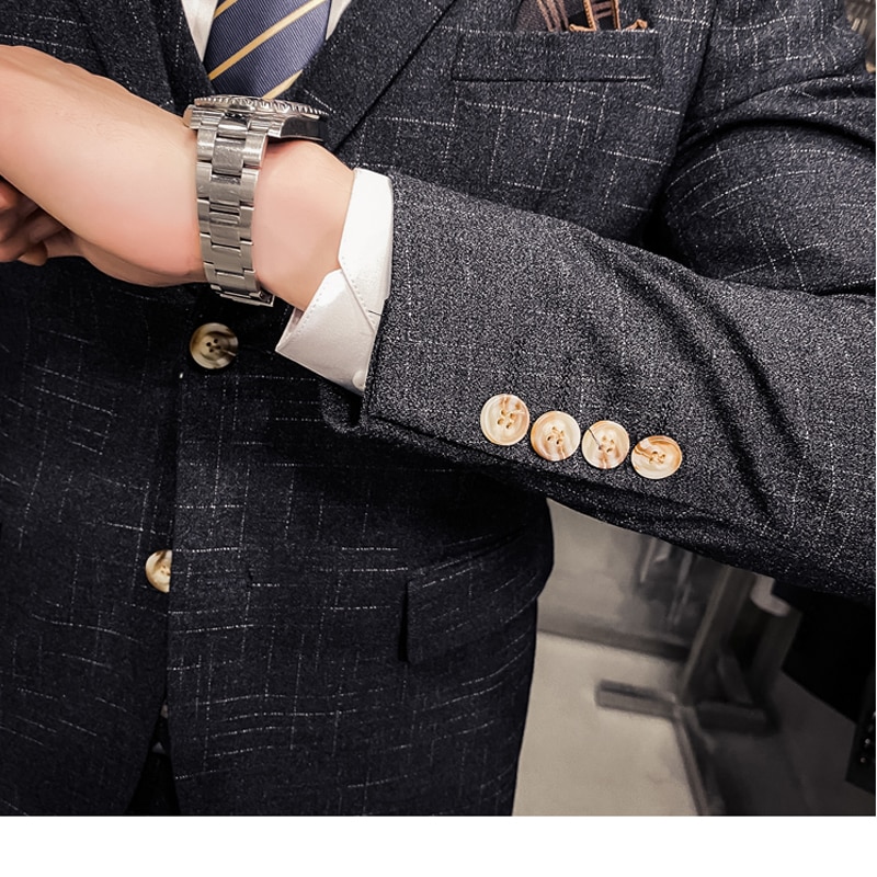 Large Size 7XL ( Blazer + Vest + Pants ) Groom Wedding Dress Dark Plaid Classic Retro Men's Formal Business Suit Three-Piece Set
