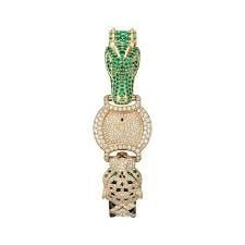 Watches with dials showcasing shagreen-set diamonds, bitten on one side by a panther, and on the other by a tiger, the heads of which are movable.